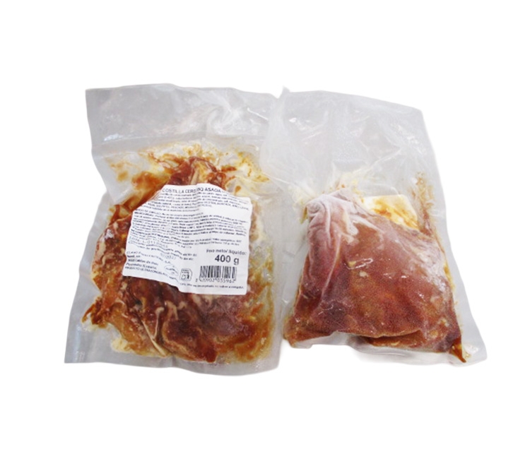 Descripción: Costilla de cerdo asada con salsa barbacoa, envasada al vacío, pasteurizada y congelada