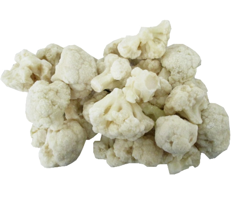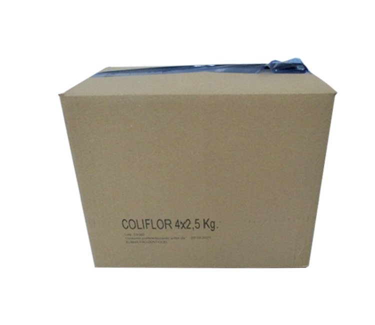 Descripción: Coliflor limpia, escaldada, calibrada por el diámetro de los floretes, congelada en IQF, glaseada y embolsada